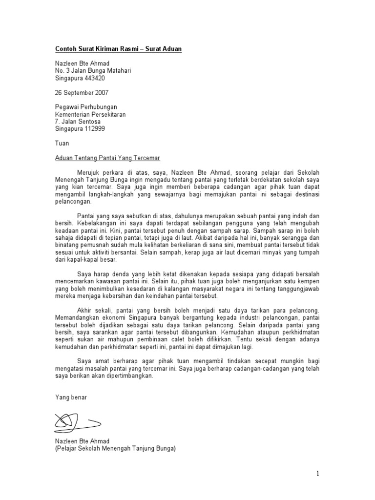 Contoh Surat Kiriman Rasmi Untuk Pelajar Yang Mudah Dan Senang Musadun Com